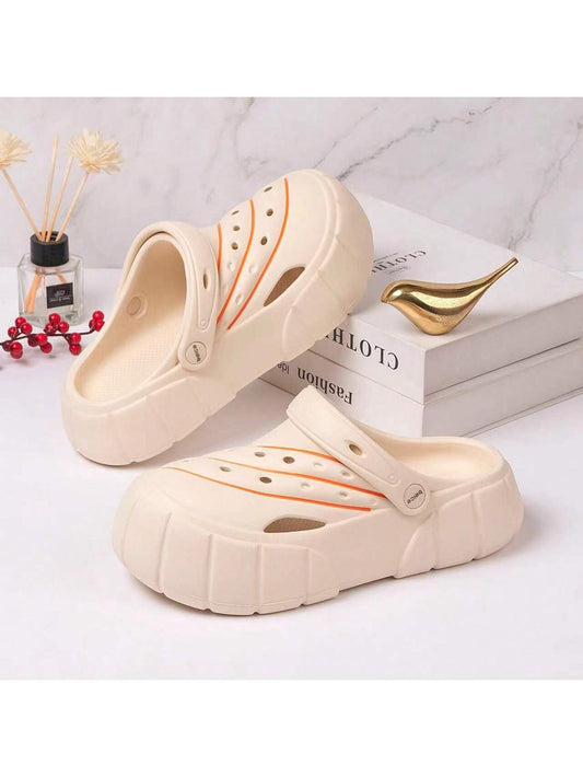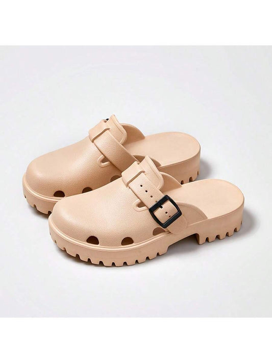 Women's Summer Mesh Hollow Slipper In Beige With Anti-Slip Sole, Stylish And Trendy, Suitable For Nurse And Beach Activities. Featuring Thick And Soft Non-Slip Sole With Breathable Hole, Perfect For Wearing Outside Or As Surgical Room Shoes.