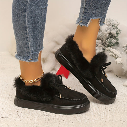 Women's Fluffy Furry Snow Boots Solid Color Bowknot Plush