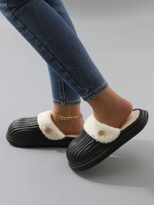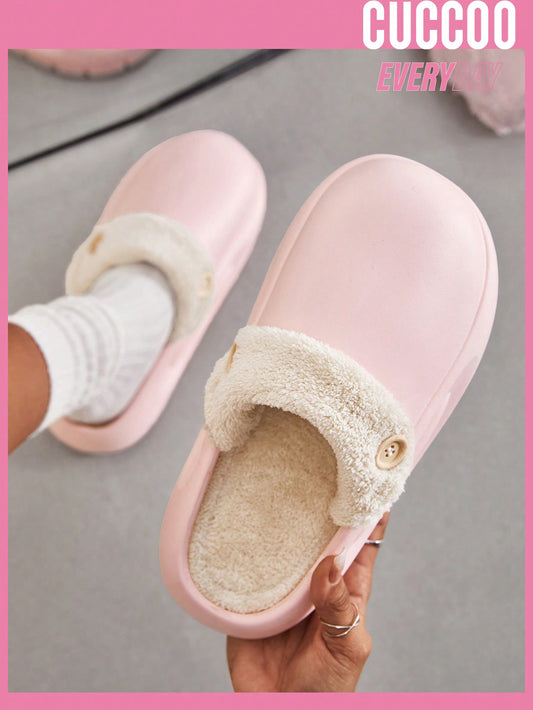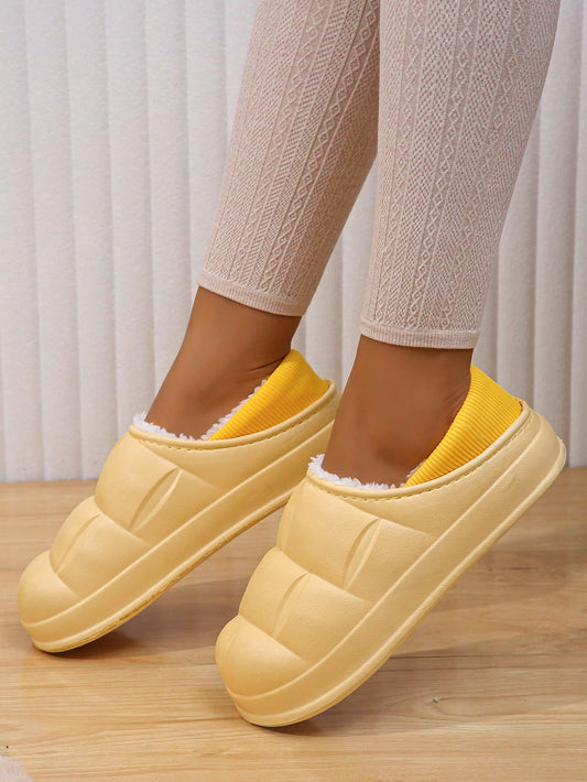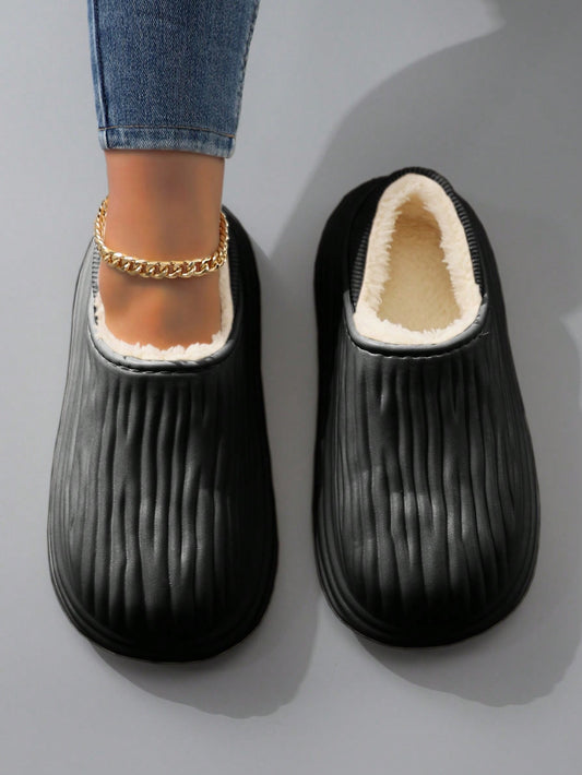Women's Removable Waterproof Velvet Slippers For Autumn And Winter, Crossband Design With Eva Sole