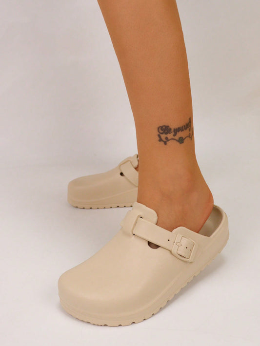 Women's Solid Color Clogs, Lightweight Closed Toe Anti-slip Shoes, Ladies' Buckle Detail Shoes, Comfortable All Seasons Footwear