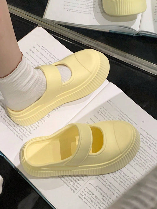 New Arrival Casual Flat Shoes For Women With Ugly-Cute Plain Color Design, Thick Sole, Suitable For Summer Outfits And Fashionable Mary Jane Style Slipper