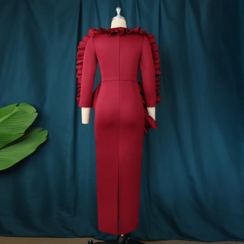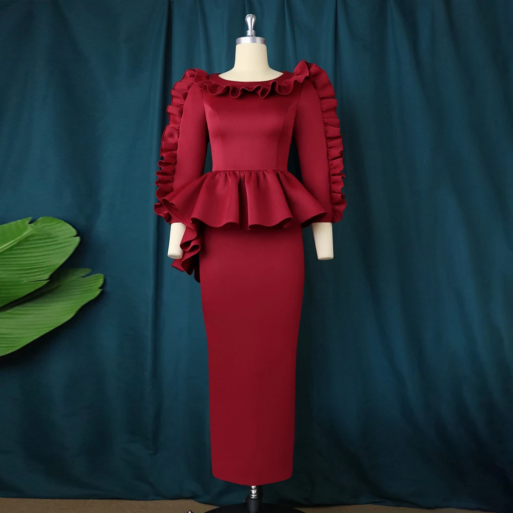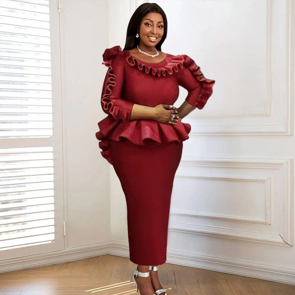 Nandi Long Sleeve O Neck Ruffles Peplum